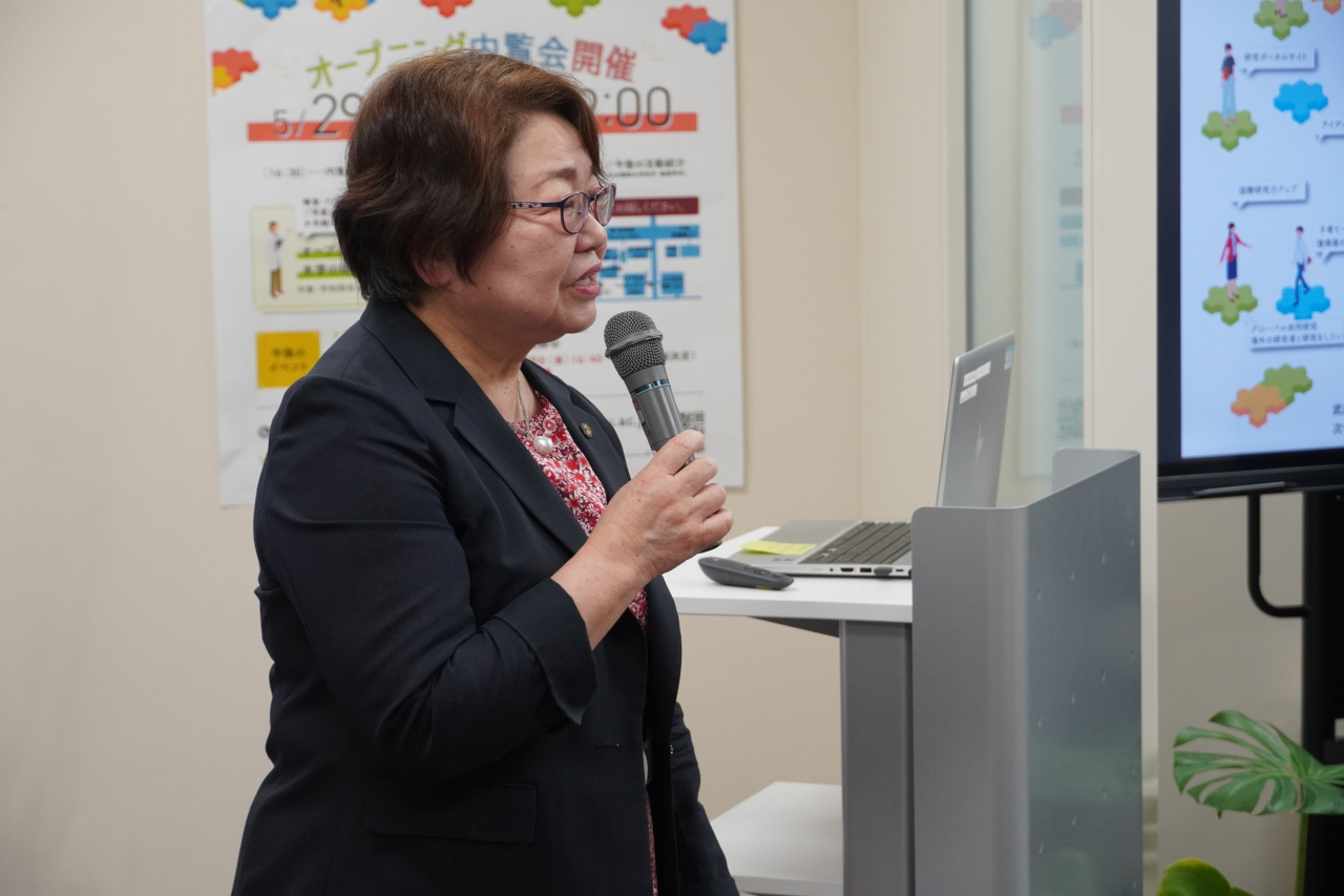 武庫川女子大学中央キャンパス西門前の研究棟の1階に、サイエンス・コモンズがオープンしました。今回の内覧会では、110人を超える方にご参加いただきました。 オープニングイベントでは、瀬口学長よりサイエンス・コモンズから多くの共同研究が生まれることへの期待、高橋副学長より今後のサイエンス・コモンズでの研究発信を応援するコメントをいただきました。