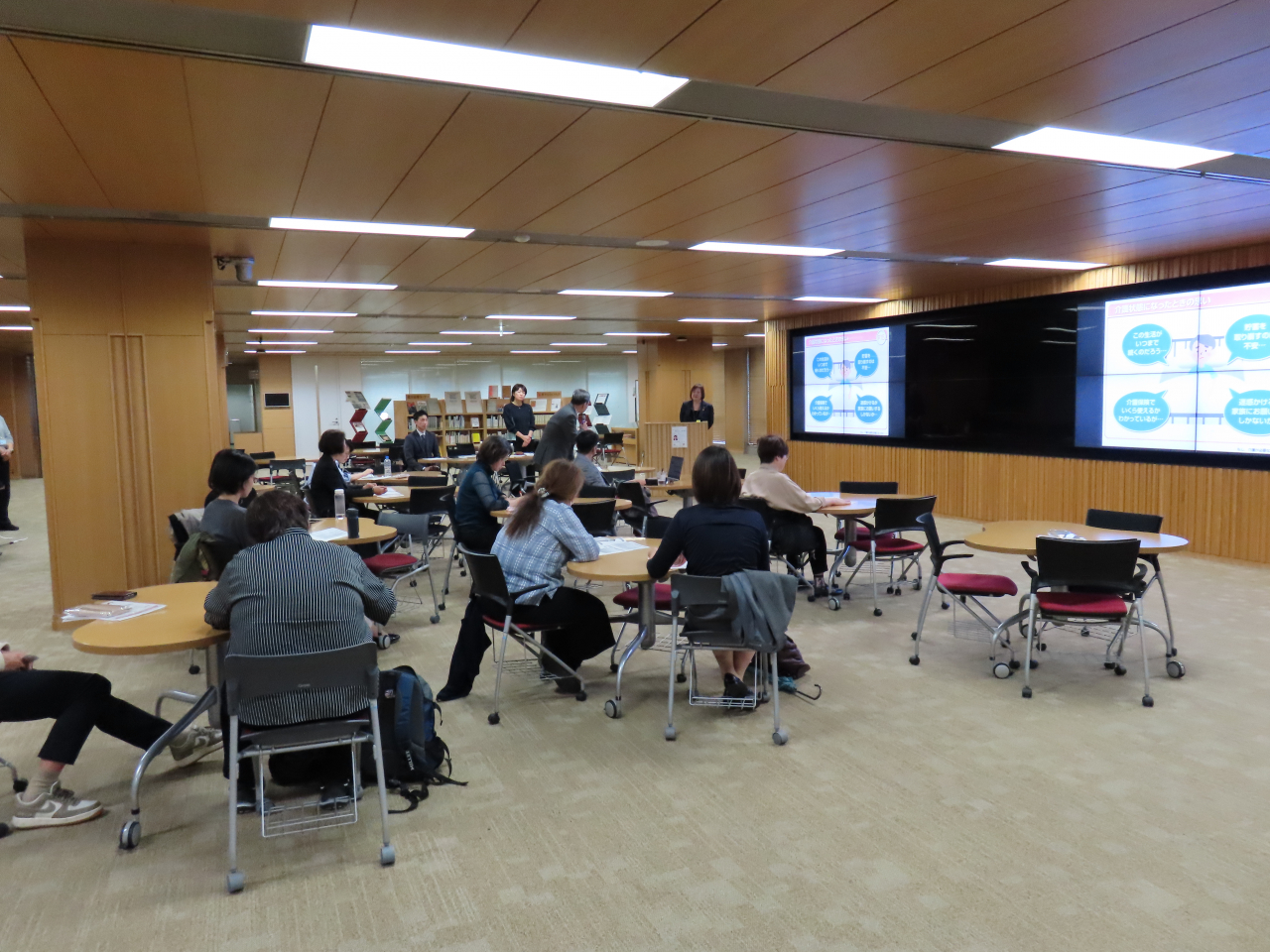 | お知らせ「今からできる!親と自分の『介護の備え』~ライフイベントでキャリアを中断しないために~」を2025年10月25日(土)13:30~15:00に中央キャンパスで開催しました。教員、職員、大学院生あわせて17名が参加しました。