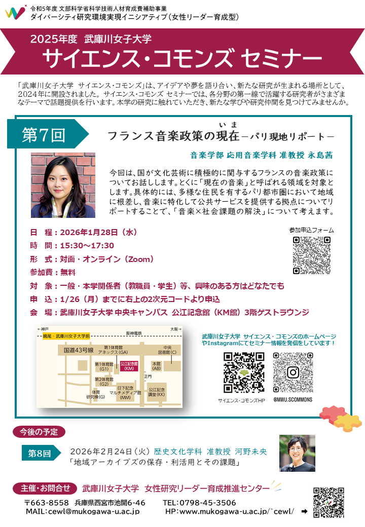 | 場所 | 武庫川女子大学 中央キャンパス 公江記念館(KM) 3階ゲストラウンジ |