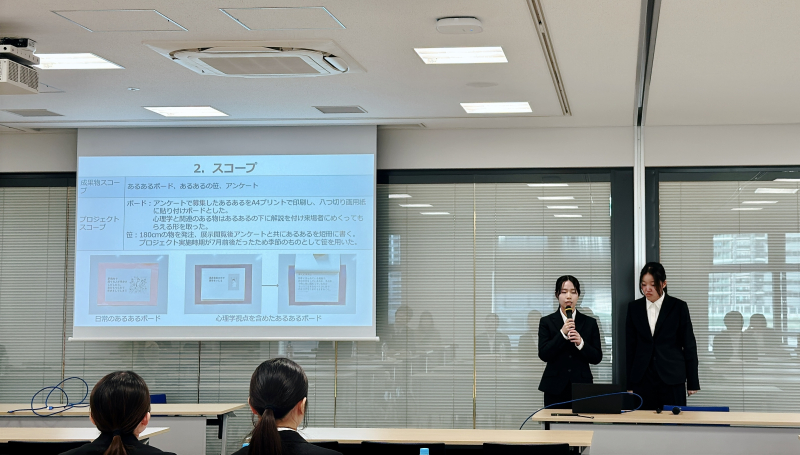 学生たちは2年後期からプロジェクトマネジメントを体系的に学び、そこで得たその知識を活かして3年前期(2025年度)には「心理学科のオープンキャンパス改善」をテーマとした実践的プロジェクトに取り組みました。