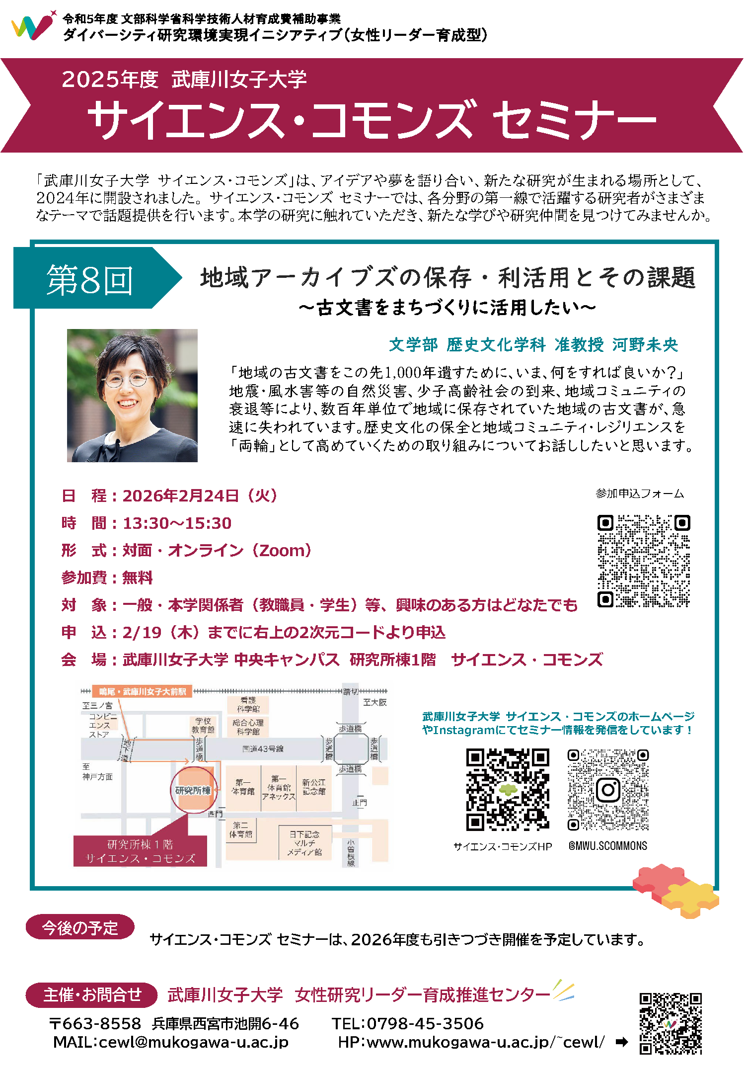 | 場所 | 武庫川女子大学 中央キャンパス 研究所棟1階 サイエンス・コモンズ |