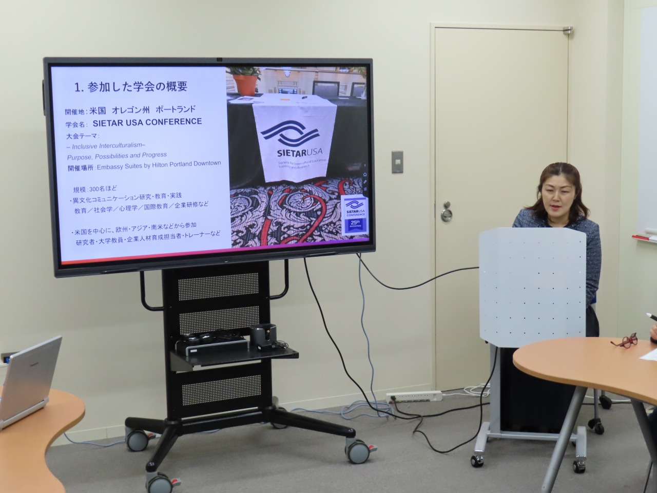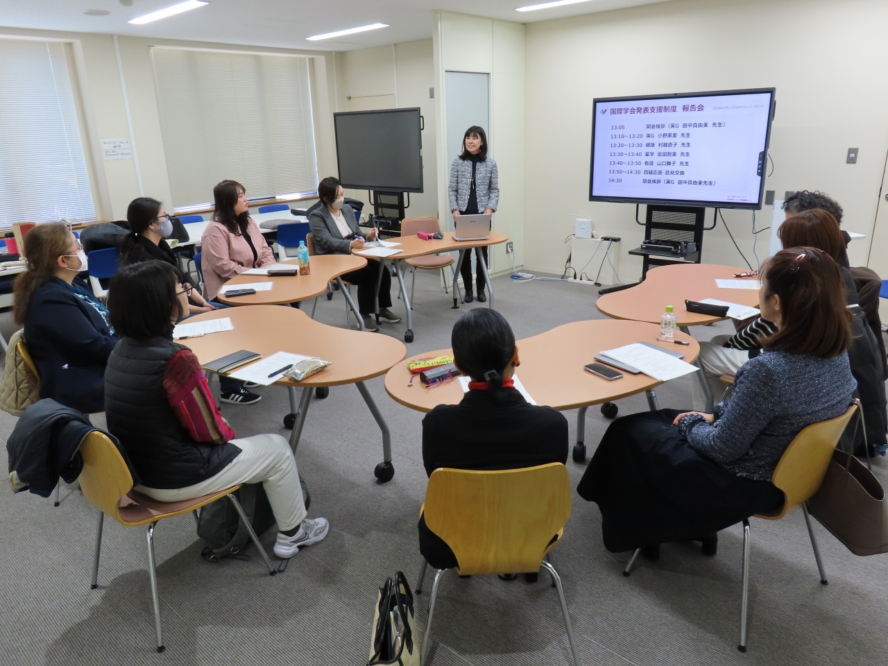 本報告会は、ダイバーシティ研究環境実現イニシアティブ(女性リーダー育成型)補助事業の一環である「国際学会発表支援制度」を活用した成果を共有するものです。2025年度に採択された4名の教員が登壇し、それぞれの国際学会での活動について報告を行いました。