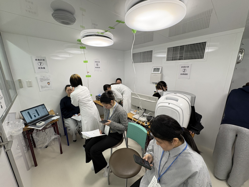 健康科学総合研究所は2月2日と3日、「若年女性の食習慣と健康障害との関係や出生時体重との関連性に関する研究」の測定会を開きました。本学学生を対象に体組成や骨密度、皮膚状態(水分量や皮脂量など)を測定し、貧血や糖質・脂質代謝などを評価するための血液検査をしました。また、食物摂取頻度調査から摂取エネルギー量も推算します。