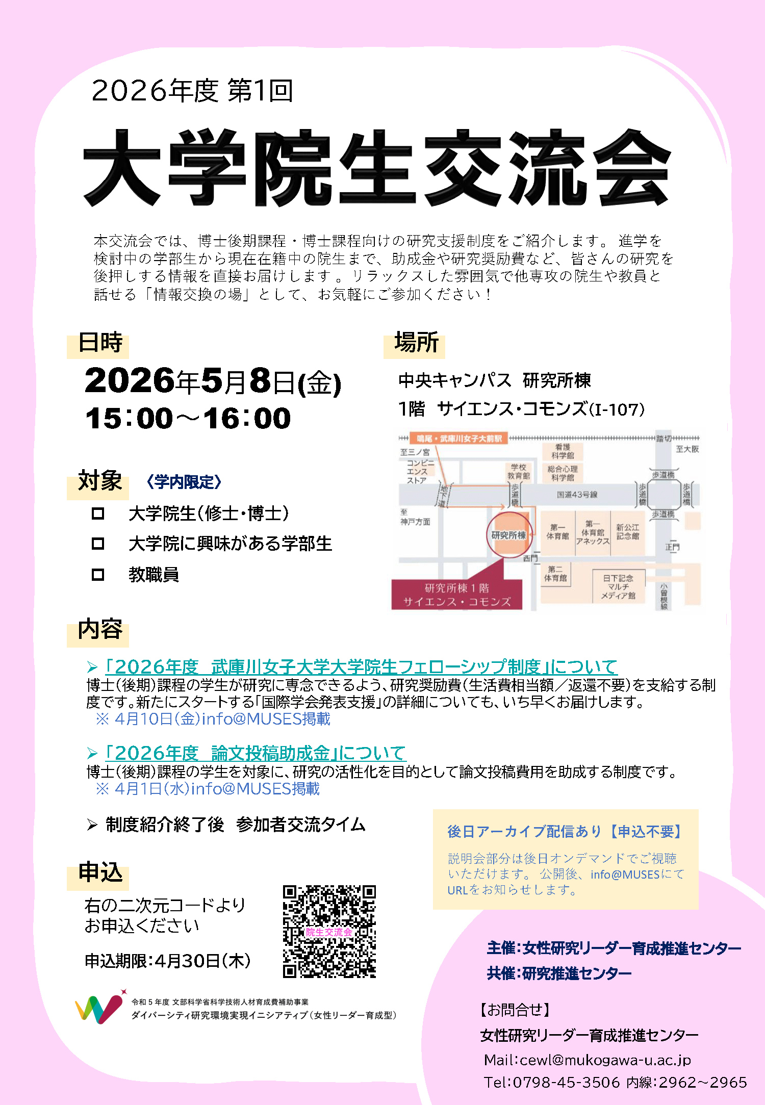 内容 ・「2026年度武庫川女子大学大学院学生フェローシップ制度」について
