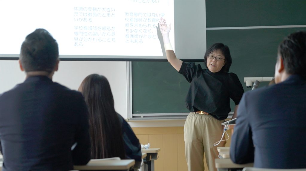 学校での医療的ケアは年々、高度化・複雑化している。医療的ケア児が安全で有意義な学校生活を送るためには、保護者・教職員・学校看護師・主治医などのきめ細やかな連携が必要で、「本人や保護者が進路や人生の選択をできることがなにより重要」と宇野教授は指摘する。「主治医が学校での子どもの様子を十分に把握できていないケースは少なくありません。そのため、医師に対しては小児科医会を通じて、現場で実践しやすい指示書の書き方などを情報発信しています。一方、学校看護師に対しては、より自信を持って対応できるよう、「主治医にはこう質問すると効果的」「現場の状況はこう伝えるとよい」といった具体的な助言を心がけています。今後は、他府県の支援体制の担当者との意見交換や、学校看護師がより効率的に働くためのリーダー育成に関する研究にも関わっていきたいと考えています。」
